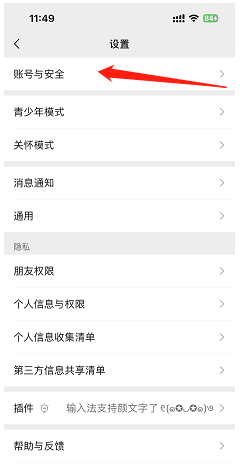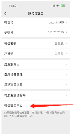 进入账号与安全设置:在账号与安全页面中,会列出与账户安全相关的设置,点击最底部微信安全中心。