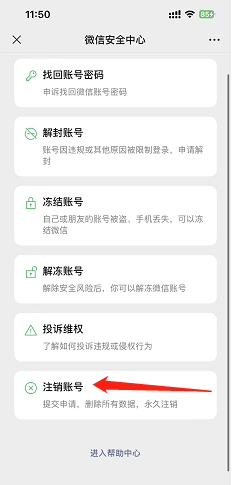 完成注销:如果一切顺利,你将看到注销成功的提示页面。你的微信账号已经成功删除。