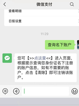 2、然后直接发送“查询名下账户”,点进回复的“点这里”