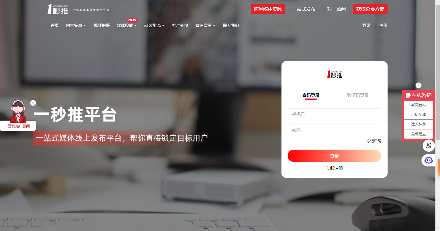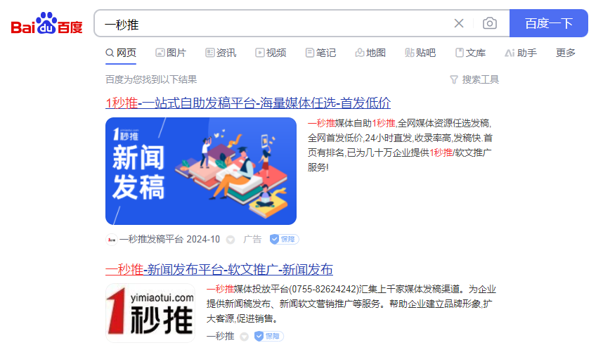 一、大家在搜索引擎中输入【一秒推】,即可找到发稿平台官方网站。