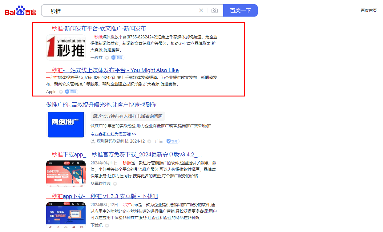 1、首先,打开百度搜索,在搜索栏内键入“一秒推”,点击进入。